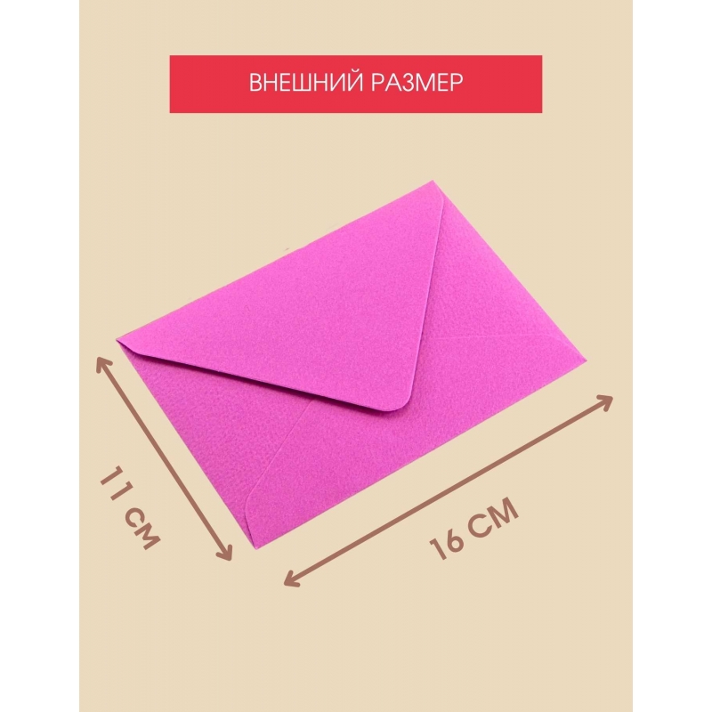 Этот конверт для сертификата подарочного, приглашения или денежных купюр выполнен в формате С6 (11×16 см) — универсальный размер для большинства случаев: от свадеб до корпоративных подарков. Плотная дизайнерская бумага 220 г/м² придает изделию статусный внешний вид и надежность.
