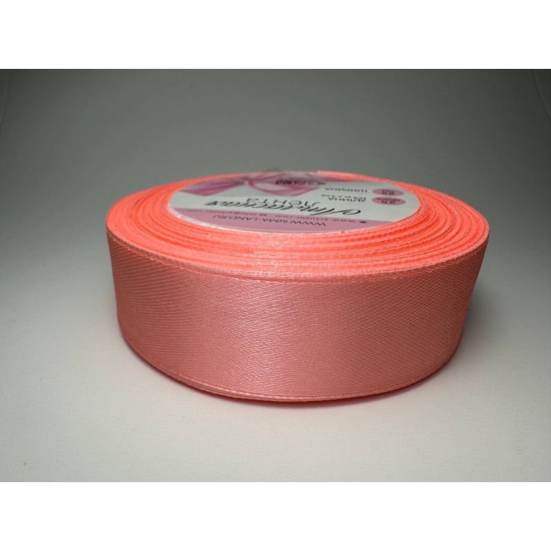Лента атласная 2,5 см (23м) - неоновый персик №66