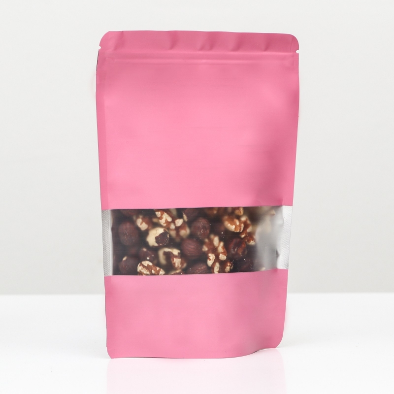 Пакет zip-lock дой-пак матовый розовый с окном (14×20×4 см)